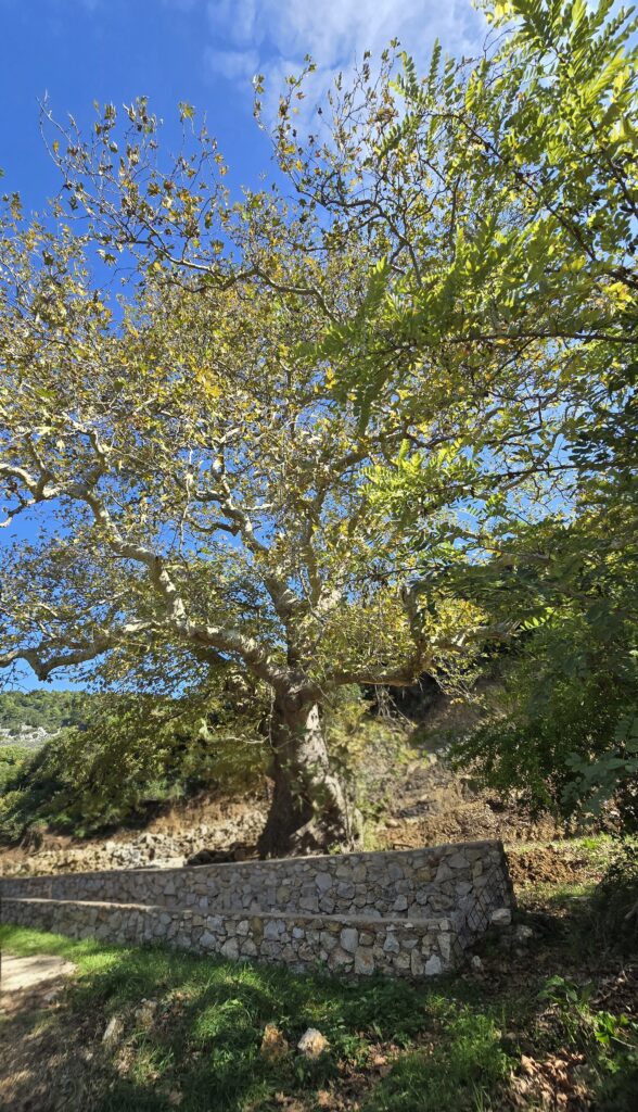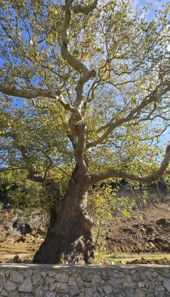 It is believed to be over 300 years old. It was a place where the women of that area used to gather to wash clothes, as nearby there is a well that was named after the plane tree.